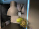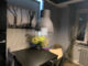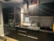 Площадь кухни 9 кв. м. На кухне органично расположен кухонный гарнитур (IKEA) стильного черного цвета со встроенной бытовой техникой: холодильник Whirlpool, духовой шкаф, вытяжка, варочная поверхность Electrolux, микроволновая печь.